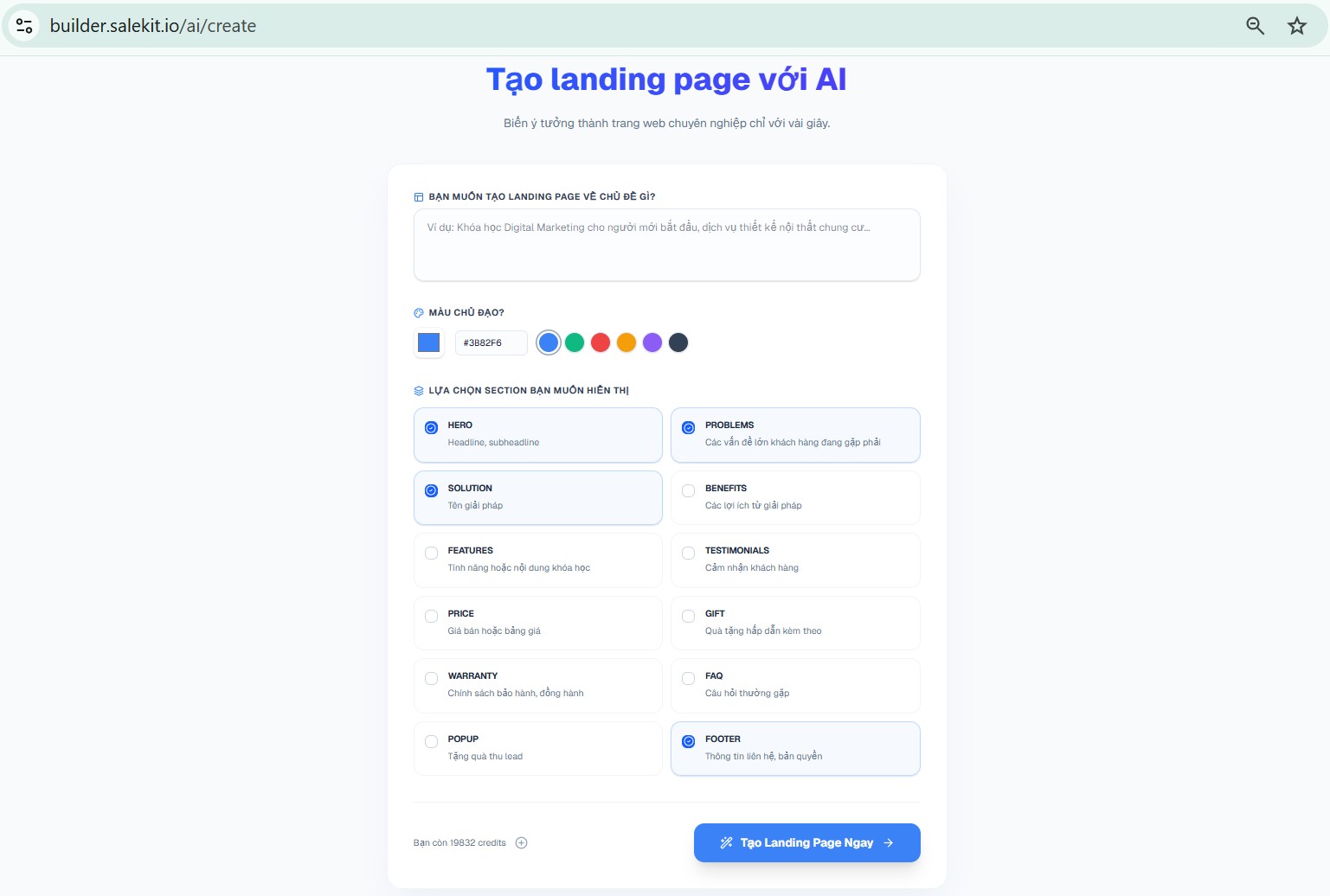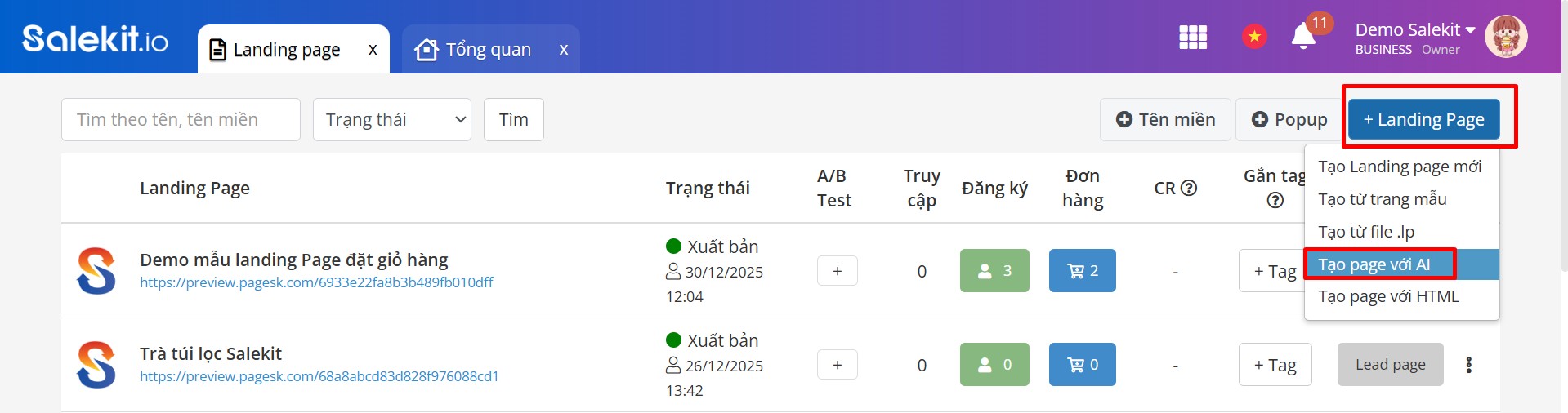 Như vậy bạn đã hoàn tất tạo landing page với AI trên Salekit.