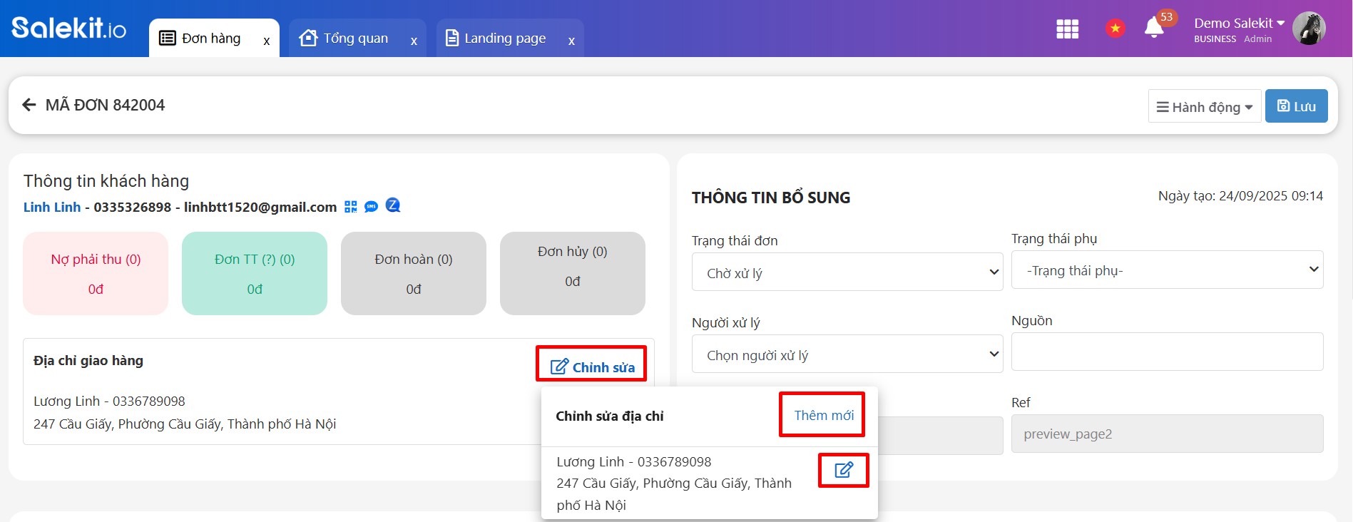 - Chỉnh sửa: Thay đổi/cập nhật thông tin đơn hàng