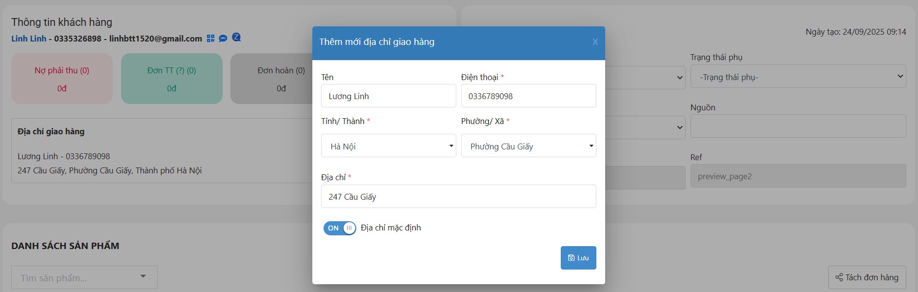 Sau khi đã nhập xong Thông tin nhận hàng, bạn nhấn Lưu để hoàn tất phần thông tin nhận hàng.